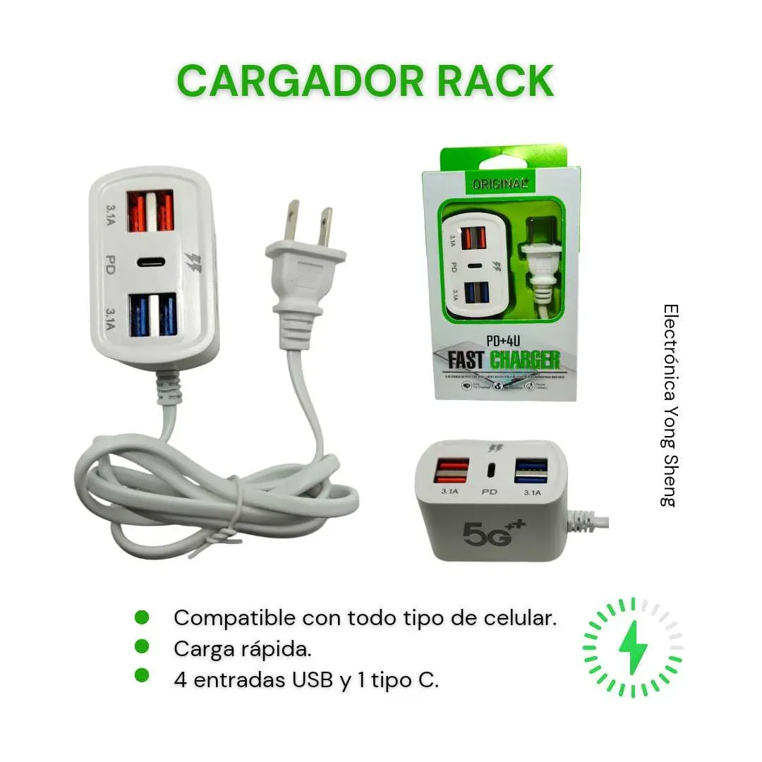 Cargador para Estante es la solución ideal para mantener tus dispositivos electrónicos cargados y organizados. Su diseño compacto y elegante se adapta perfectamente a cualquier estante o espacio de trabajo. ¡Ten tus dispositivos siempre listos para usar con este práctico cargador!